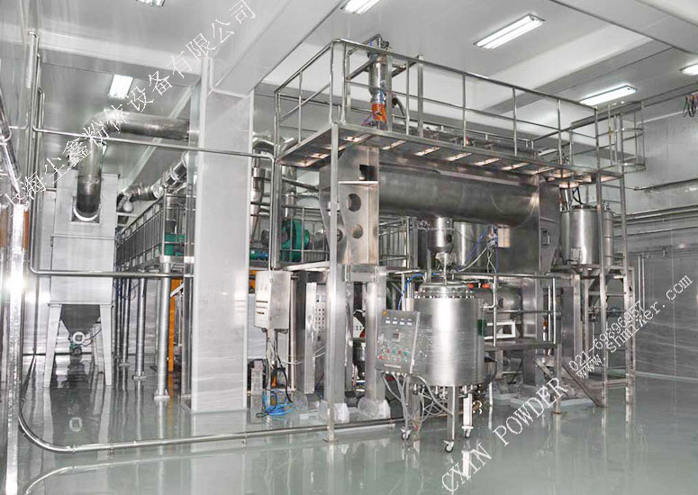 歡迎光臨上海塵鑫粉體設備…… 粉末顆粒原料 · 粉碎 · 料倉 · 輸送 · 配料 · 混合 · 噴液 · 干燥 · 成品 · 篩分 · 包裝 · 自動控制 · 成套設備!
